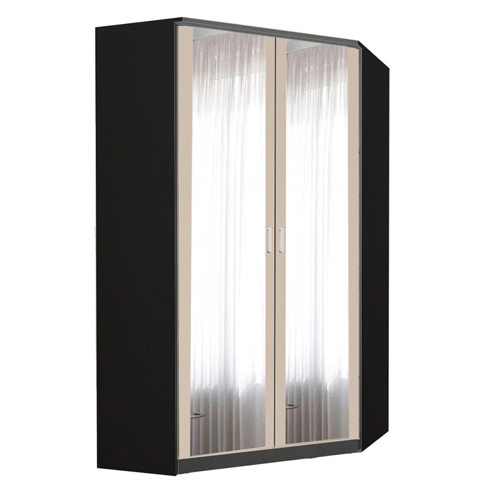 Rauch Celle Super 117cm 2 Door Corner Wardrobe with Mirror - Metallic Dark Grey and Champagne