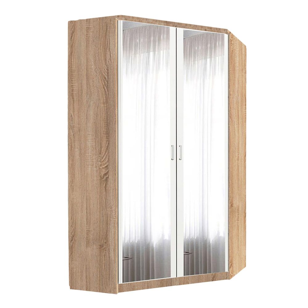 Rauch Celle Matt 117cm 2 Door Corner Wardrobe with Mirror - Sonoma Oak and Alpine White