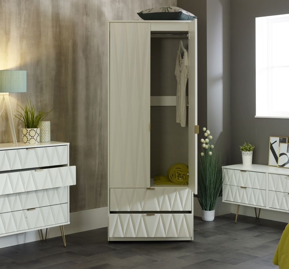 Diamond White 2 Door 2 Drawer Tall Wardrobe