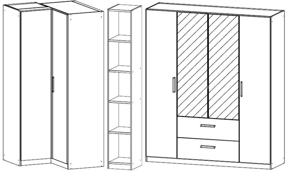 Rauch Essensa 314cm White 6 Door Combi L Shaped Wardrobe - Metallic Grey Carcase