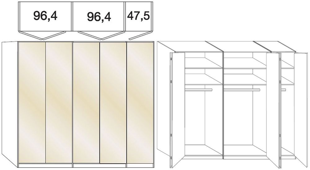 Loft Wardrobe - 5 Door Bi Fold - Magnolia Glass and Oak Carcase