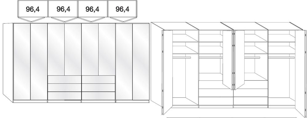 Item Code: 778-314 For custom made order please contact us. Please note: Images are used for illustration purpose only2 Adjustable Shelves, 1 Hanging Rail in Each Compartment.H 216: 6 Drawers 100cmH 236: 8 Drawers 100 cmThe exciting Loft range takes combination wardrobes to new heights, with versatility guaranteed. Choose from single, 50cm units right up to 4 metre, eight door arrangements, with bi-fold doors. The cupboards are either full length or can have three base drawers and again the combinations are all about flexibility. Now there is also a fabulous, spacious corner unit, too. Loft is from Wiermann's VIP range, there are smart grey and white striped interiors and internal shelving fittings which include a swivel shelf perfect for TV plus plenty of smart wire storage accessories.Loft comes in with a choice of dark rustic oak or pebble grey carcase colours while door and drawers fronts come in these finishes plus white or pebble grey, white or magnolia glass as well as mirrors.Naturally, there's the usual range of bedside and larger chests of drawers, a bedframe in various sizes and lengths, and additional light fittings for beds, bedside and wardrobes.This is a Made to Order item All Made to Order items are manufactured as per the order supplied by you.We are unable to accept cancellation or accept any extra cost that may incur due to wrong information provided by you at the time you placed the order.We will confirm all sizes/colours/finishes in written email (order confirmation) with you before going ahead with production of your order.