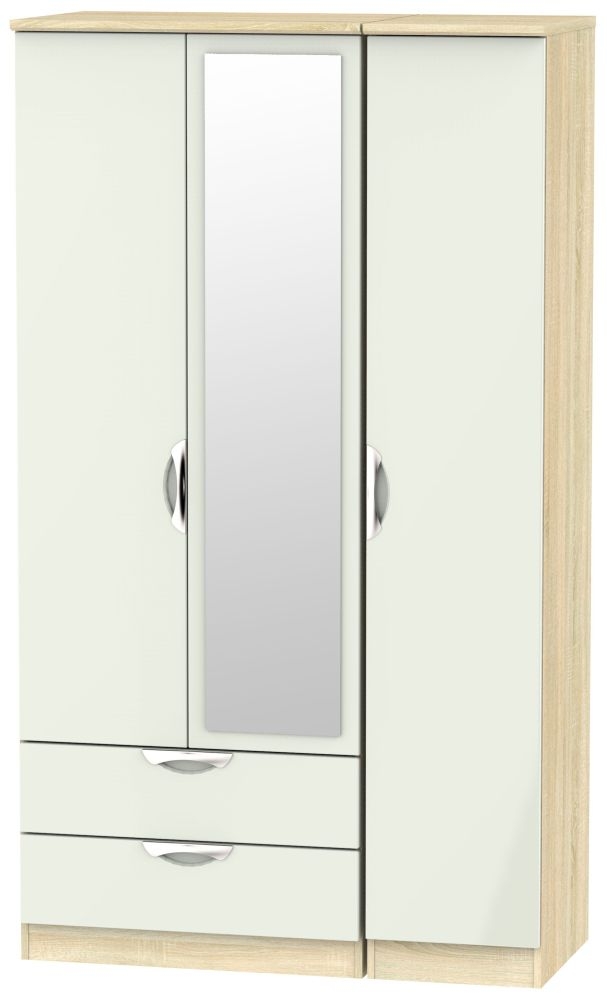 Camden Cashmere and Oak Effect 3 Door Tall Combi Wardrobe - 1 Mirror and LHF 2 Drawers