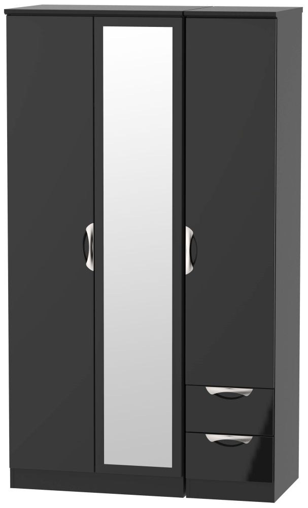 Camden Black Gloss 3 Door Tall Combi Wardrobe - 1 Mirror and RHF 2 Drawers