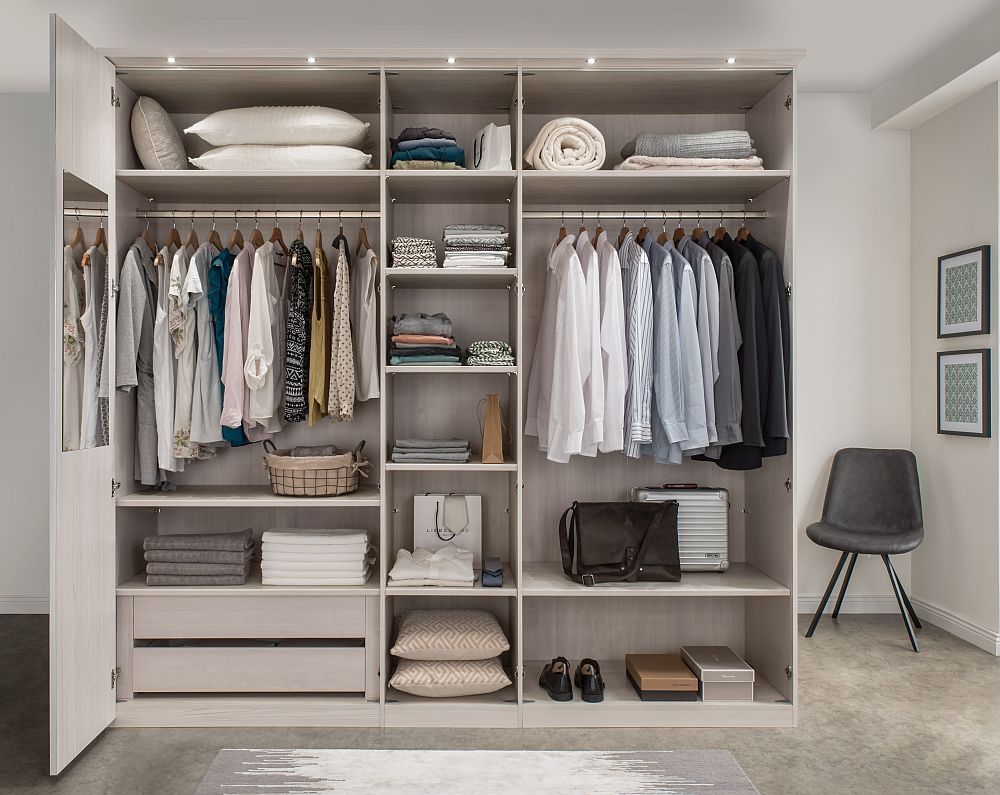 Item Code: 554-055 For custom made order please contact us. Please note: Images are used for illustration purpose onlyInterior: 2 adjustable shelves, 1 clothes rail.All In can make life simple. Here's a smart hinged door wardrobe option, in a wide range of combinations from 50cm to four metre widths, with a comprehensive collection of interior storage fitments that you can specify as either a basic or premium package. Job done! Fortunately there's also a nice choice of contemporary carcase and door shades - white, pebble grey, and bianco oak carcases and doors, which can be mixed and matched with white, pebble grey or champagne glass fronts - all set off with smart chrome trims and handles. Oh - there's some freestanding chests of drawers in the range too so you can complete your bedroom in the same style.This is a Made to Order item All Made to Order items are manufactured as per the order supplied by you.We are unable to accept cancellation or accept any extra cost that may incur due to wrong information provided by you at the time you placed the order.We will confirm all sizes/colours/finishes in written email (order confirmation) with you before going ahead with production of your order.