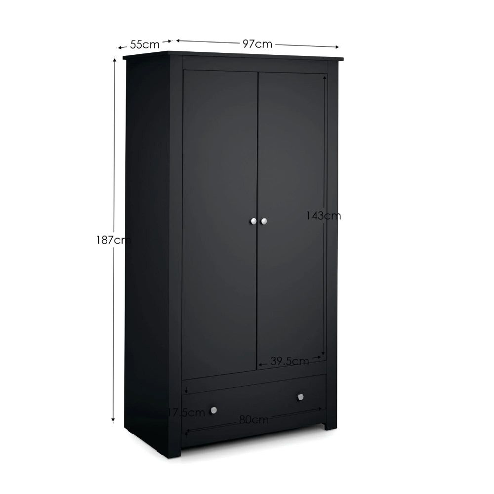 Radley Double Wardrobe - 2 Door - 1 Drawer - Dark Grey