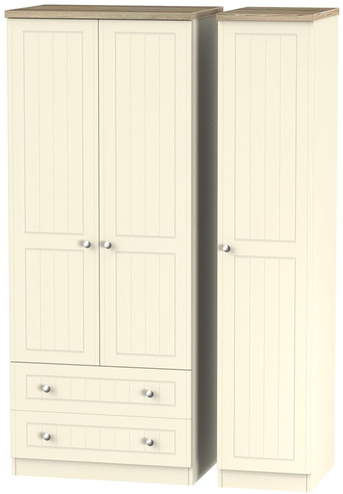 Vienna Cream 3 Door Triple Wardrobe - LHF 2 Drawers