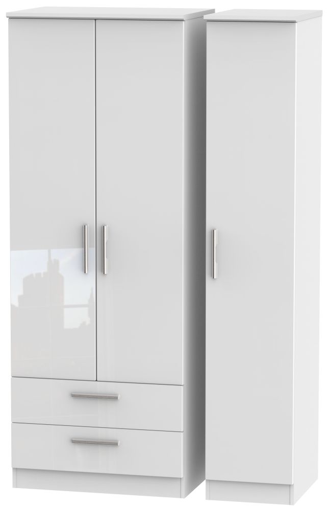 Knightsbridge White Gloss 3 Door Tall Triple Wardrobe - LHF 2 Drawers