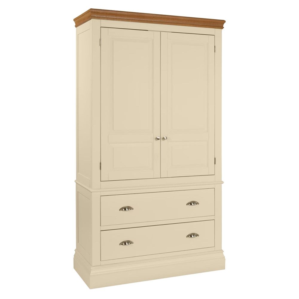 Timeless elegance meets everyday practicality in the Versailles Ivory Painted 2 Door 2 Drawer Double Wardrobe. Designed to bring refined style and reliable storage to your bedroom, this wardrobe combines an ivory-painted body with a contrasting natural oak top for a look that is both classic and versatile.