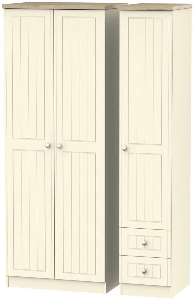 Vienna Cream 3 Door Tall Triple Wardrobe - RHF 2 Drawers