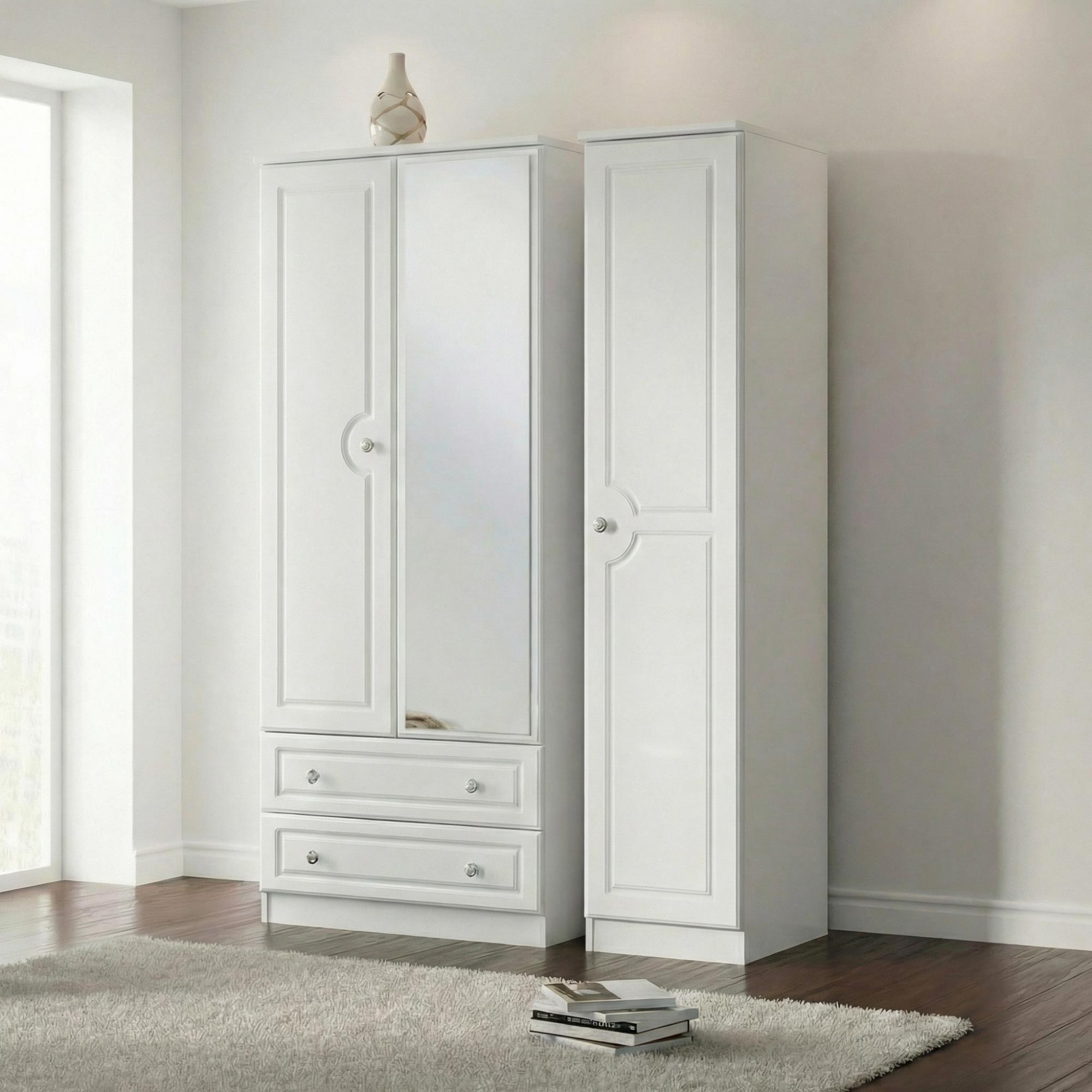 Pembroke White 3 Door Combi Wardrobe - 1 Mirror and LHF 2 Drawers