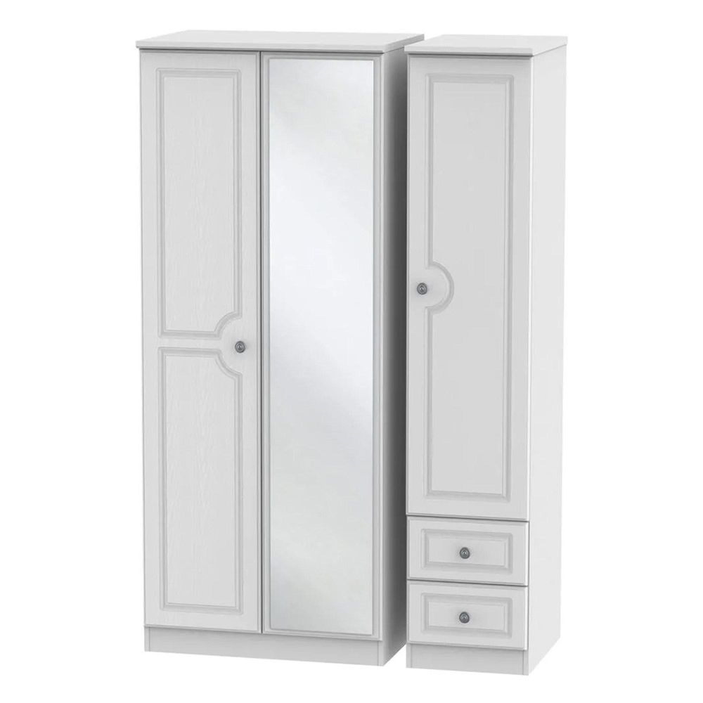 Pembroke White 3 Door Combi Wardrobe - 1 Mirror and RHF 2 Drawers