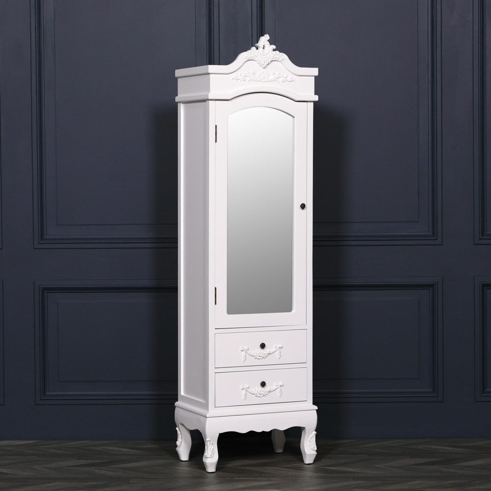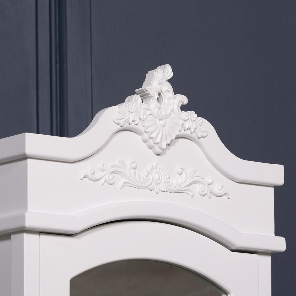 French Style Armoire Combi Wardrobe - White Carved - 1 Door