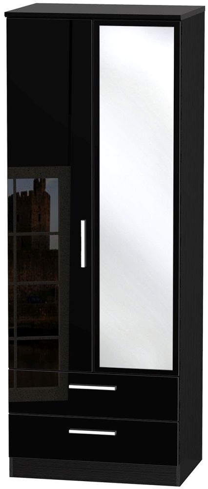 Knightsbridge Black Gloss 2 Door Tall Combi Wardrobe - 1 Mirror