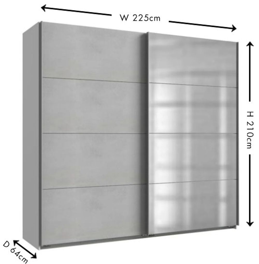 IN STOCK Ernie Concrete Grey 2 Door Sliding Wardrobe