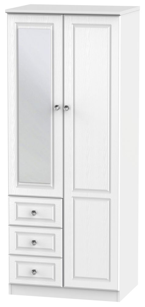 Crystal White 2 Door Combi Wardrobe - 1 Mirror RHF 3 Drawers
