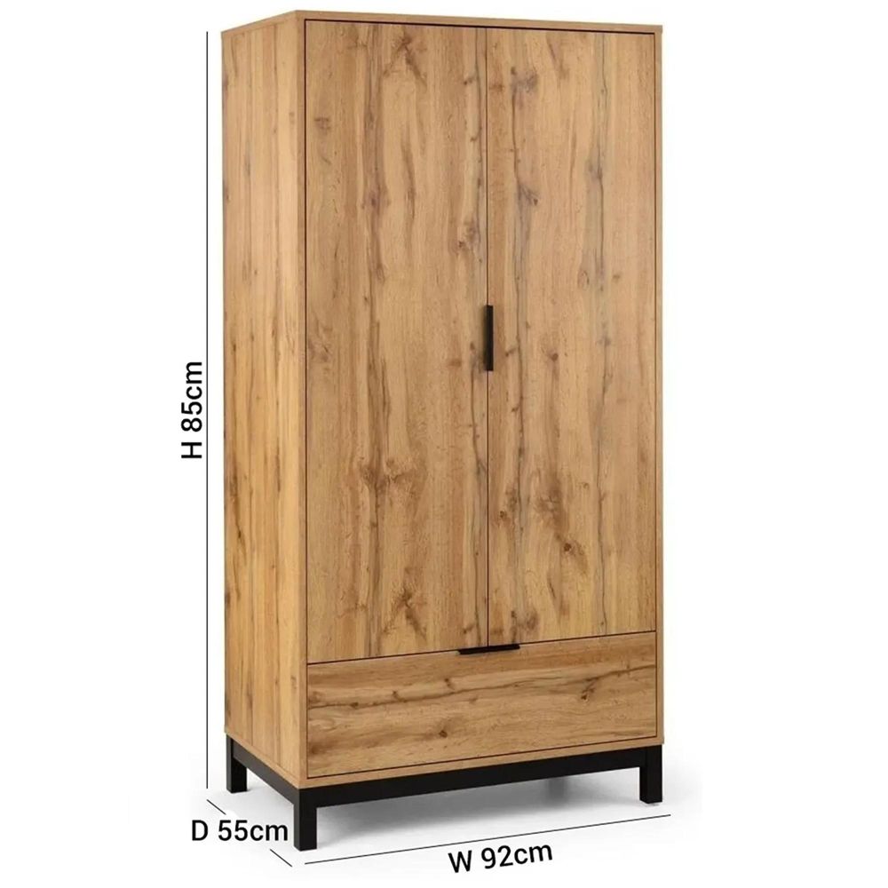 Bali Oak Double Wardrobe - 2 Door - 1 Drawer