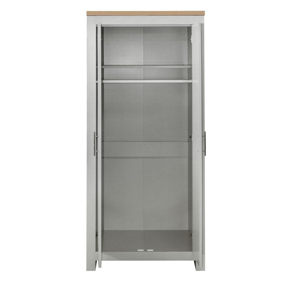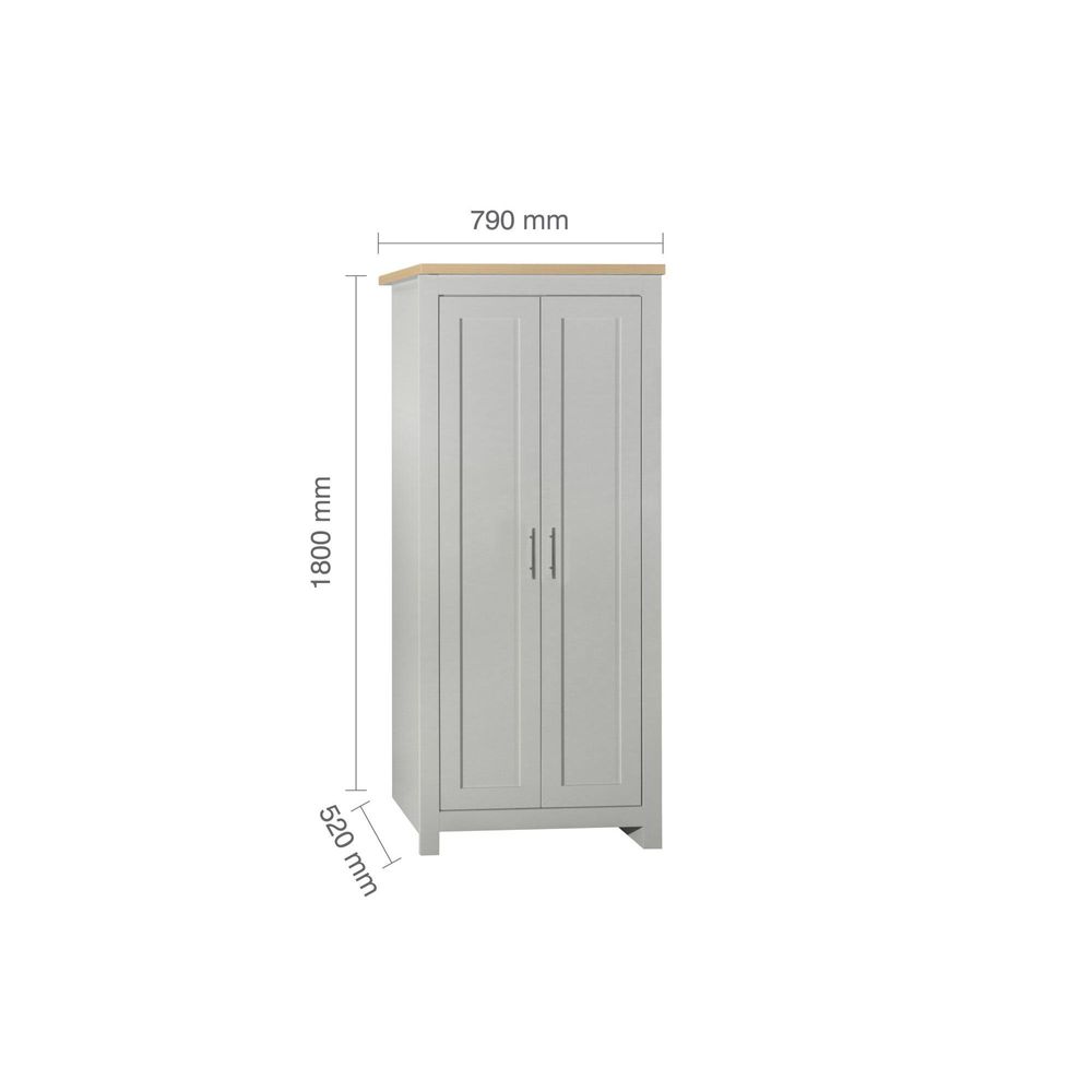 Item Code: HIG2WGOK Inspired by classic farmhouse furniture the Highgate range has been designed to complement both modern and traditional homes.Available in cream & oak, grey & oak and navy & oak this range will suite a wide array of interiors.The Highgate 2 door wardrobe is spacious behind double doors, featuring a hanging rail.The doors are finished off with contemporary silver handles.Care instructions: Wipe carefully with a soft, dry cloth.