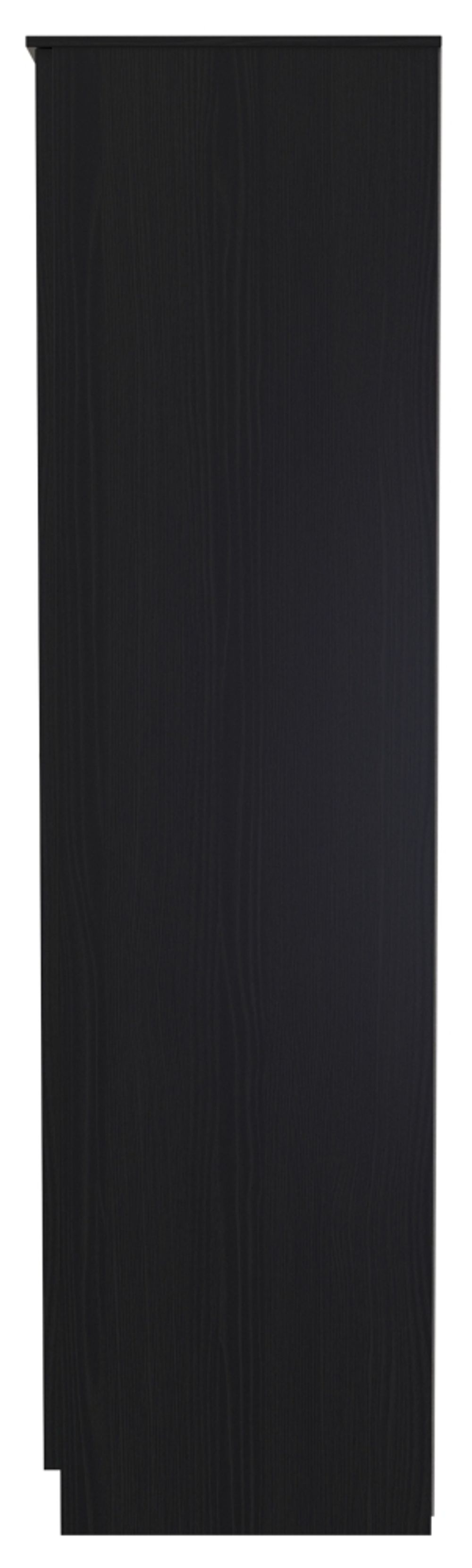 Item Code: RAT060B This 2 door wardrobe is the perfect addition to any space. Made from particle wood and finished in a classic black ash, it's sure to blend in perfectly with any décor. The traditional hinged doors feature a rattan insert and open to reveal ample storage space. Easy to assemble, this wardrobe is both stylish and practical.