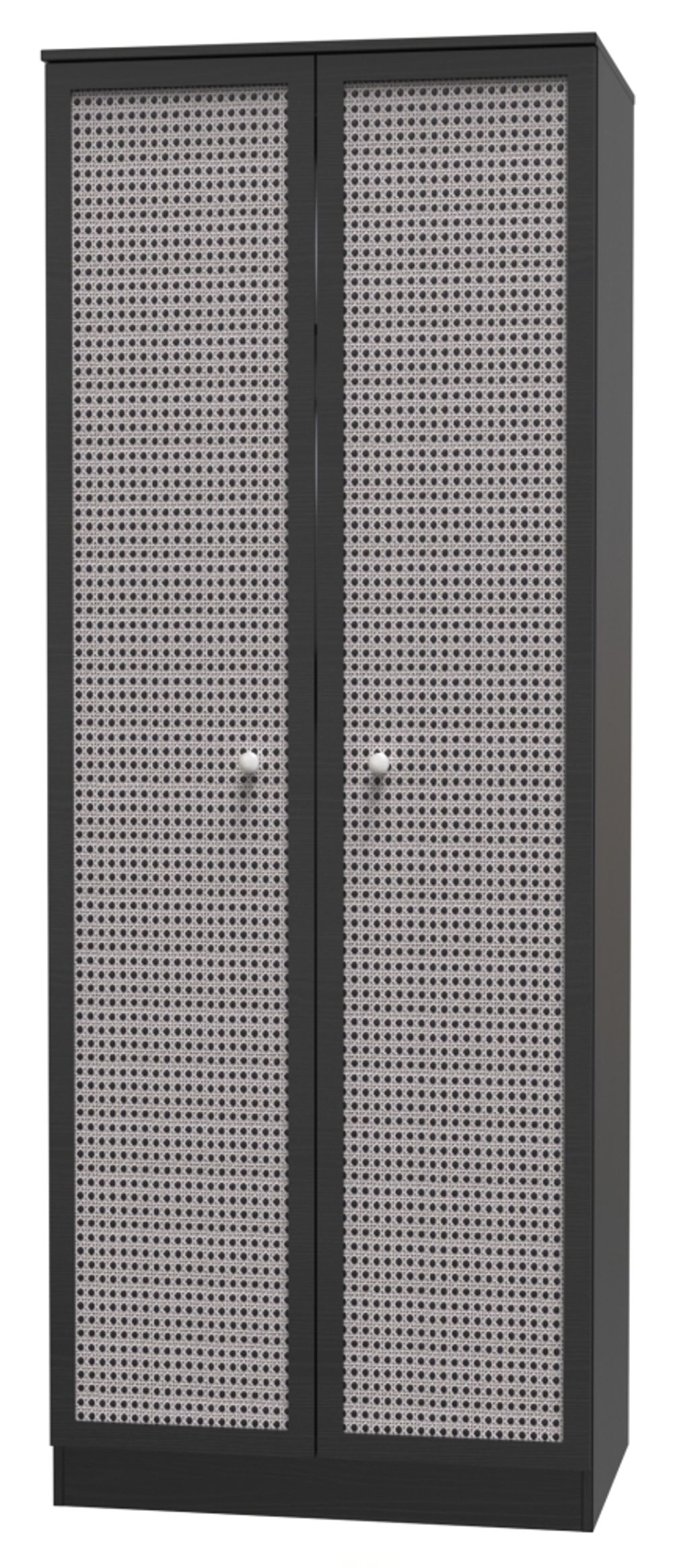 Rattan and Black Ash 2 Door Plain Wardrobe