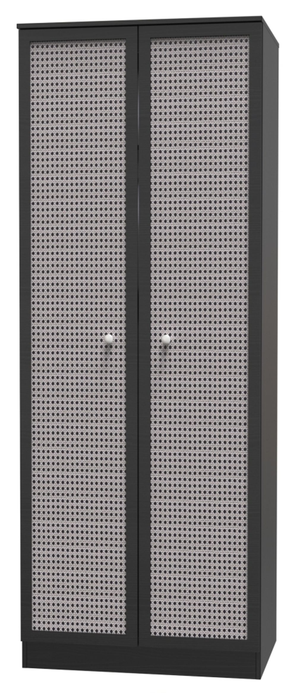 Rattan and Black Ash 2 Door Plain Tall Wardrobe