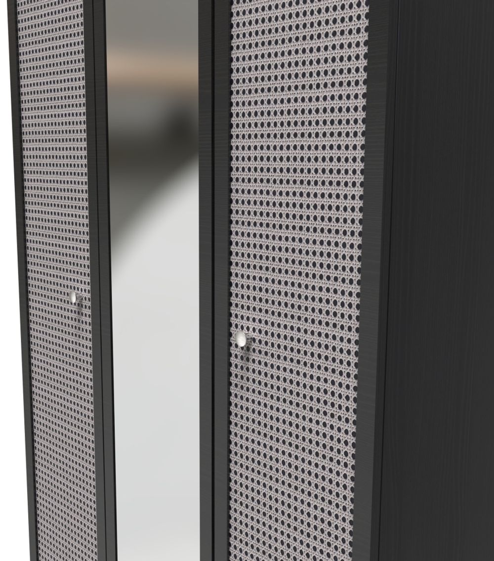 Rattan and Black Ash 3 Door Triple Wardrobe - 1 Mirror