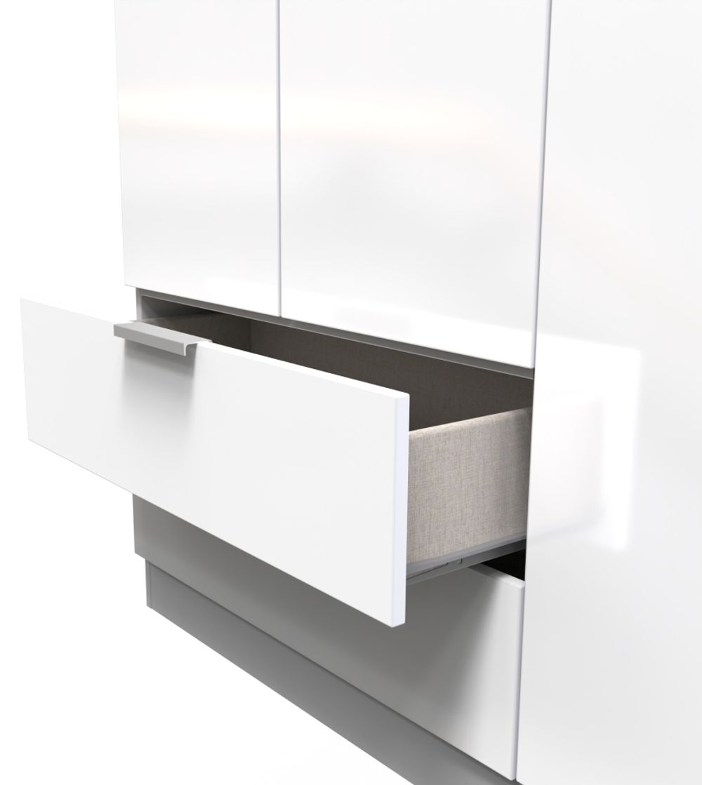 Plymouth White Gloss 3 Door Tall Triple Wardrobe - LHF 2 Drawers