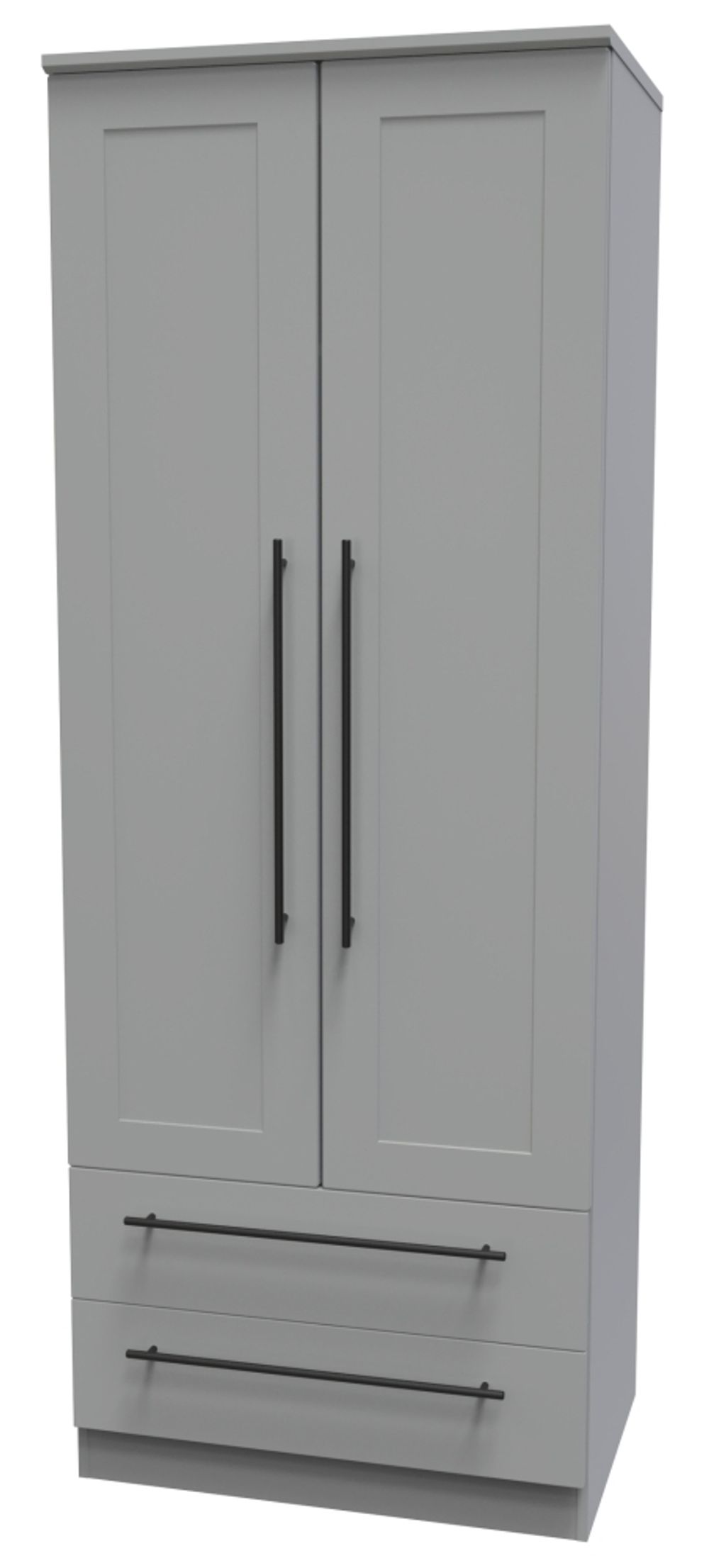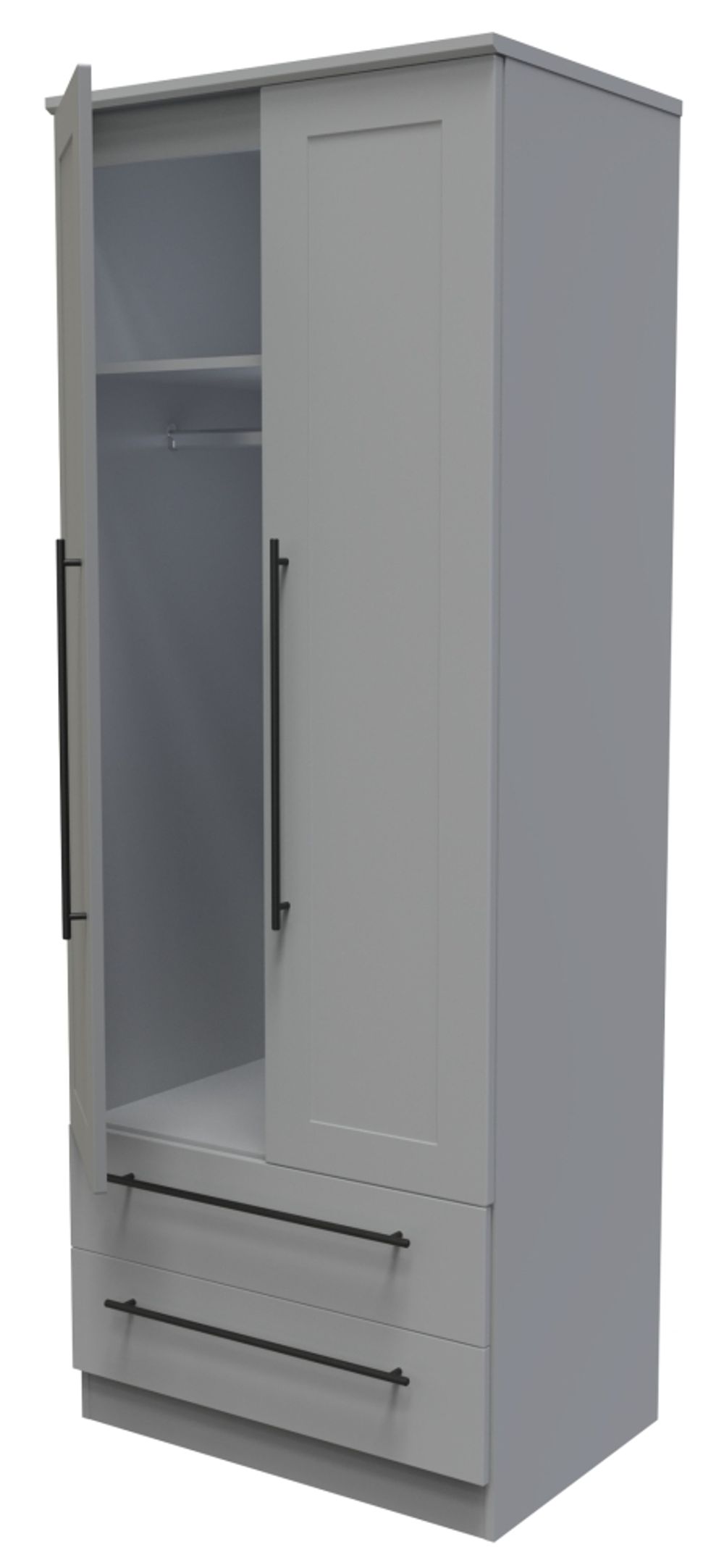 Beverley Grey 2 Door 2 Drawer Tall Wardrobe