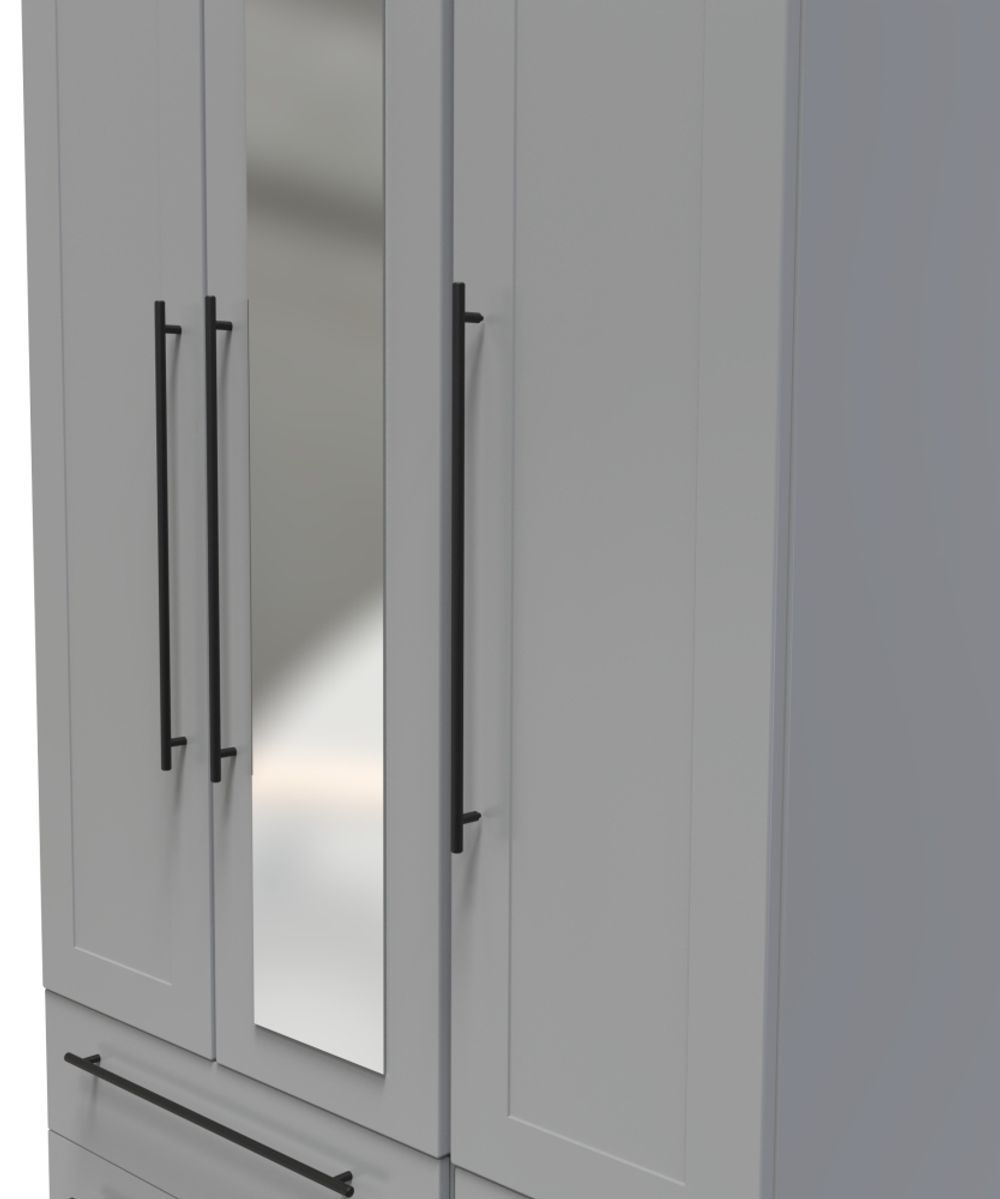 Beverley Grey 3 Door Tall Combi Wardrobe - 1 Mirror