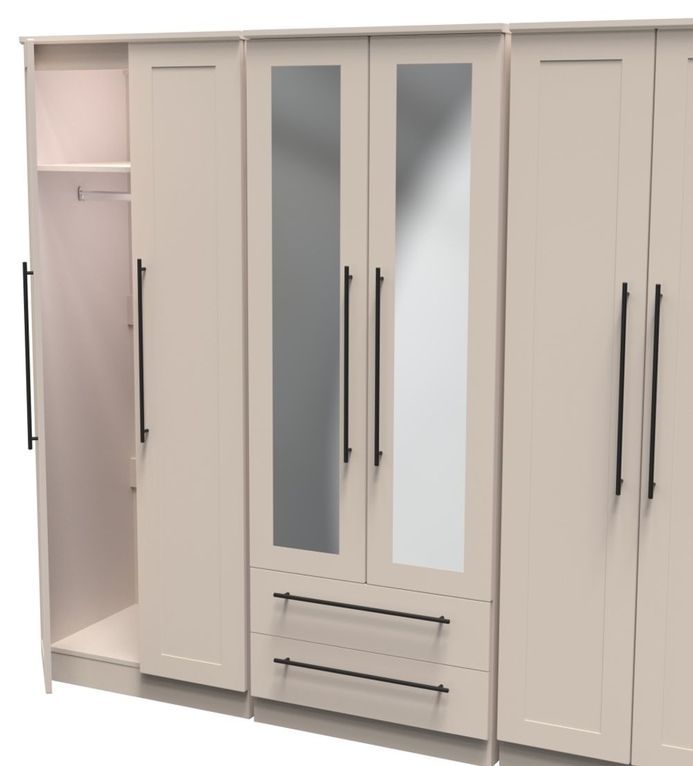 Beverley Cashmere 6 Door Tall Mirror Combi Wardrobe