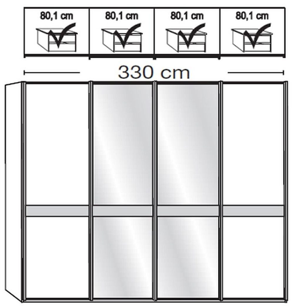 Rialto Sliding Wardrobe - 4 Door Mirror - White Glass and Graphite Trim - 330cm