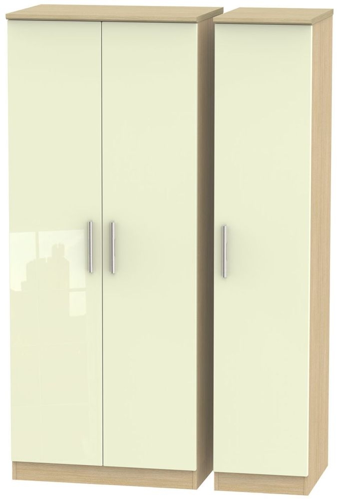 Knightsbridge Cream Gloss and Light Oak 3 Door Triple Wardrobe