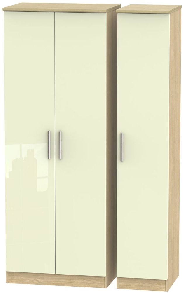 Knightsbridge Cream Gloss and Light Oak 3 Door Tall Triple Wardrobe