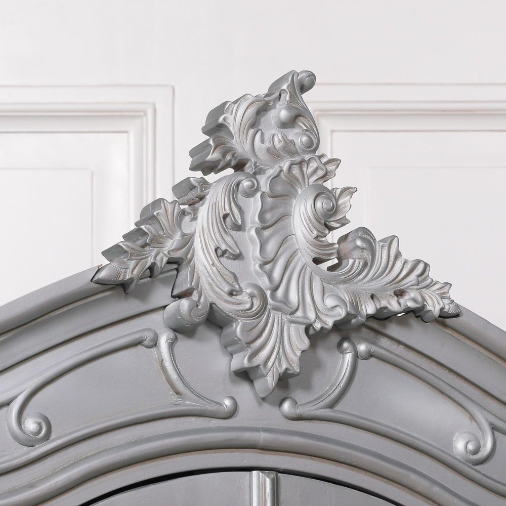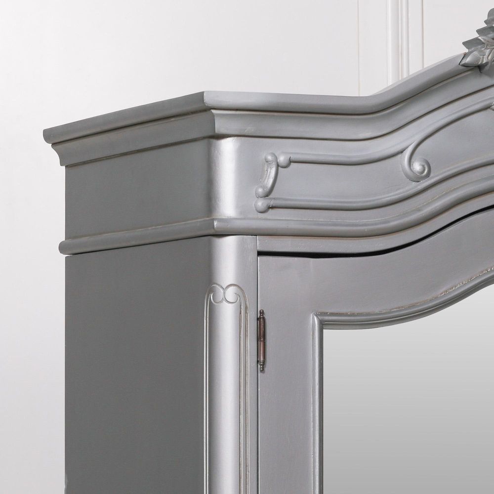 French Style Armoire Wardrobe - Silver Carved - 2 Door Mirror