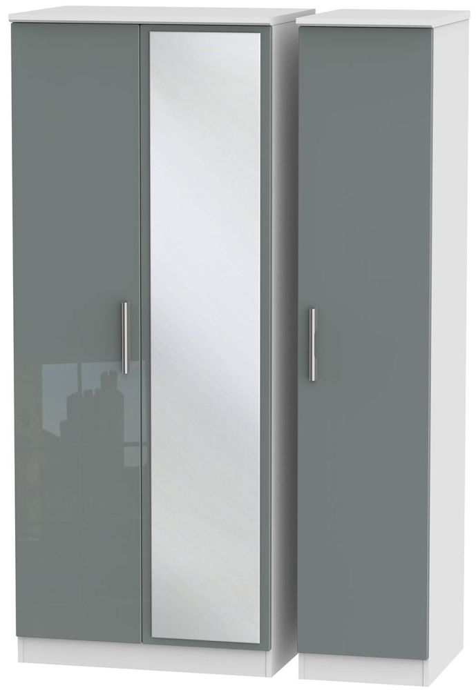 Knightsbridge Grey Gloss and White 3 Door Triple Wardrobe - 1 Mirror
