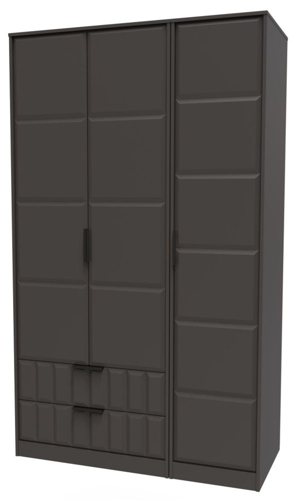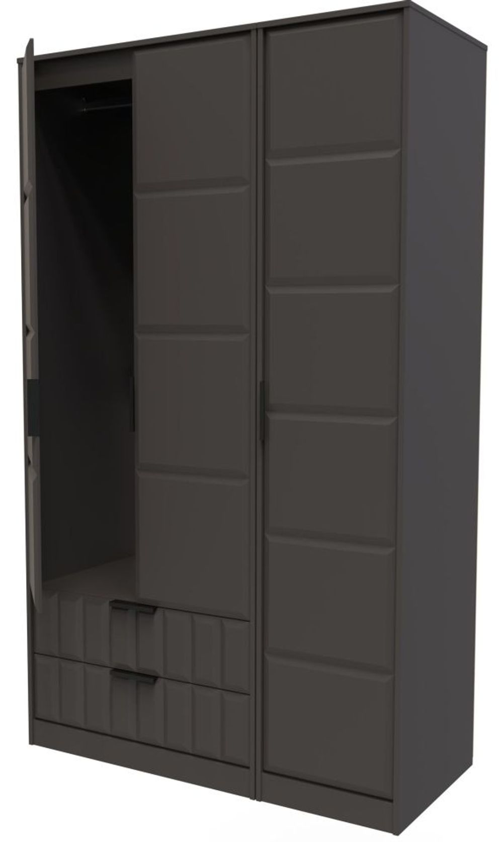 New York Graphite 3 Door Tall Triple Wardrobe - LHF 2 Drawers