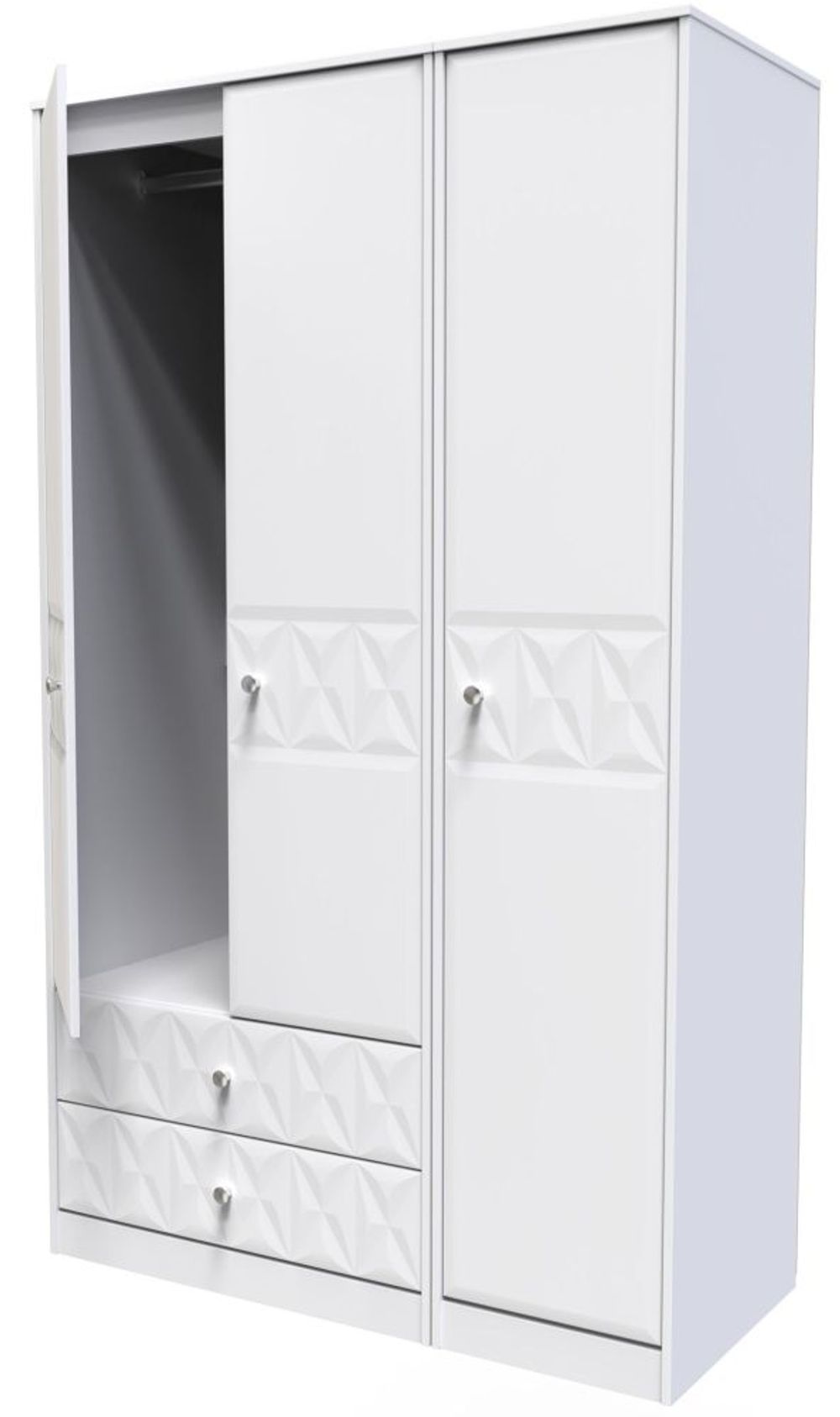 San Jose White 3 Door Tall Triple Wardrobe - LHF 2 Drawers
