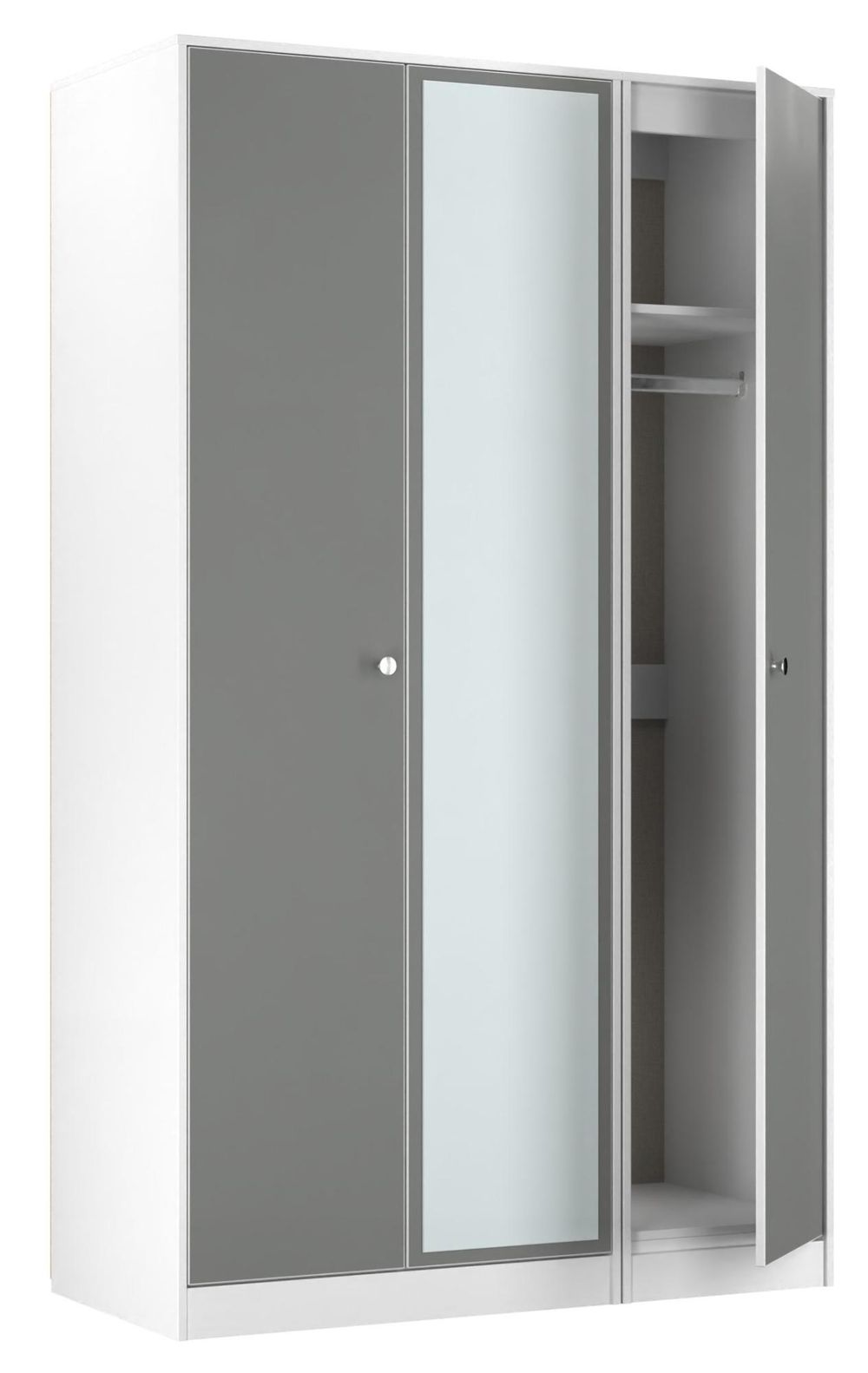 Padstow Grey and White 3 Door Tall Triple Wardrobe - 1 Mirror