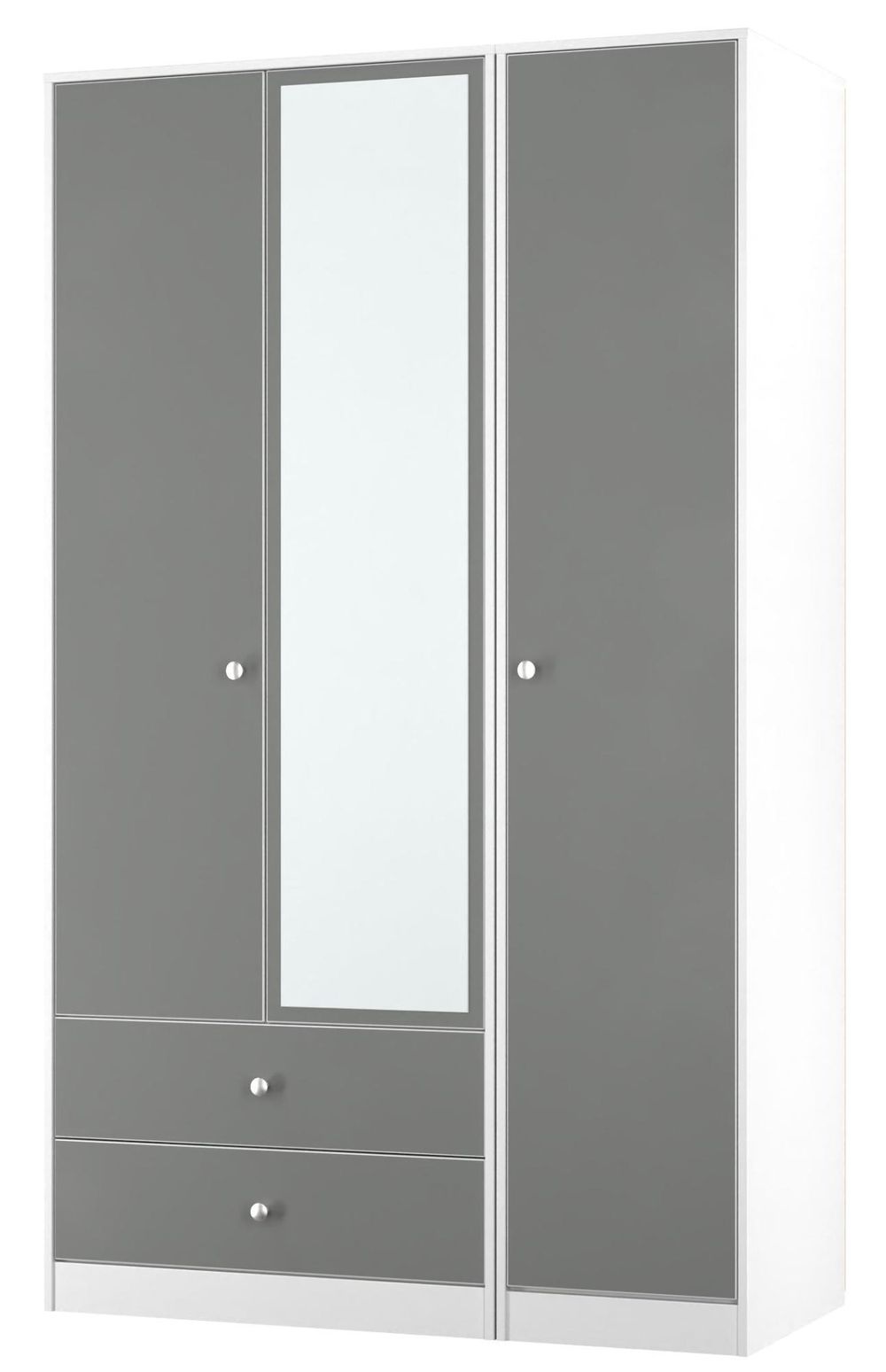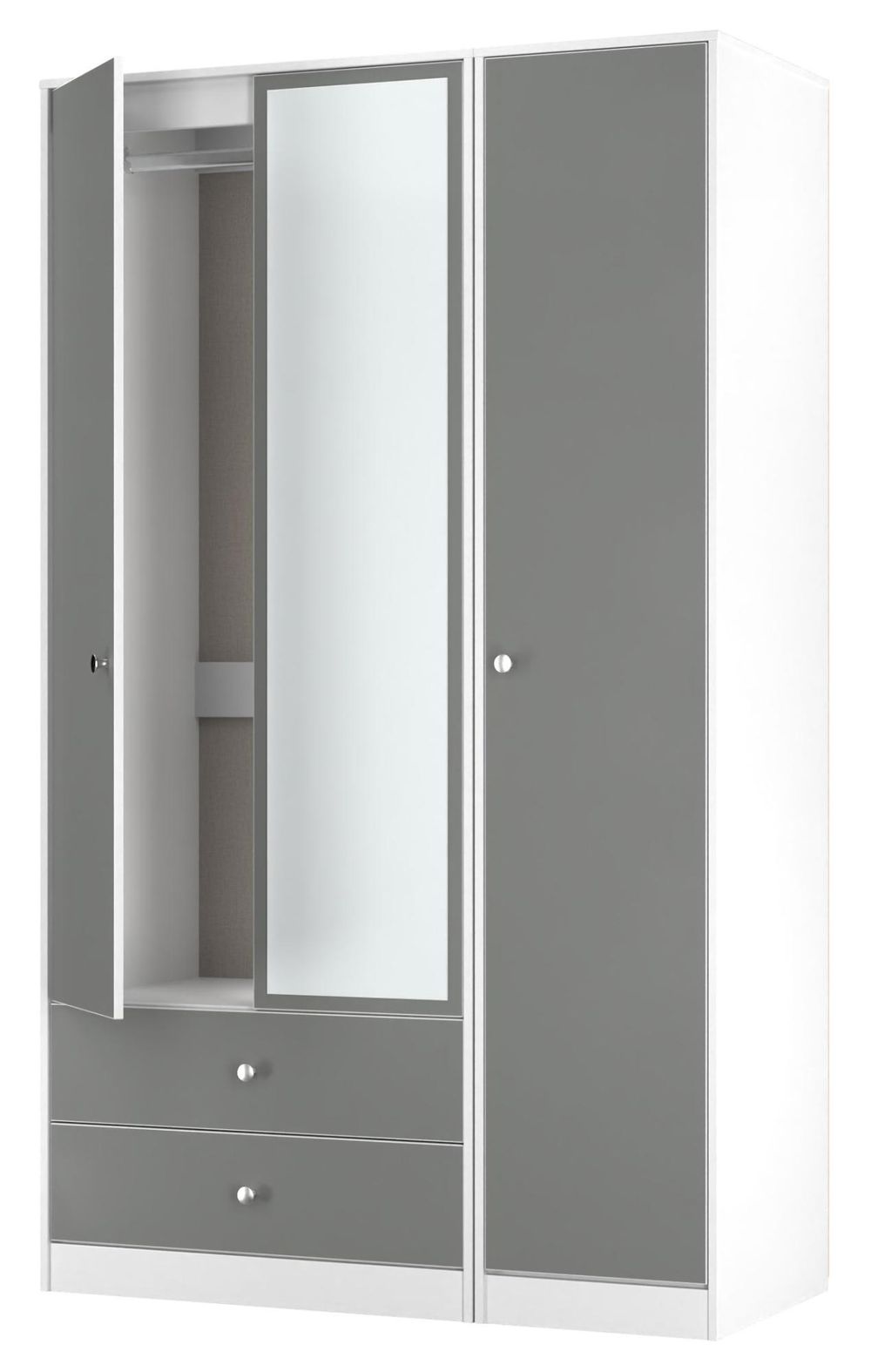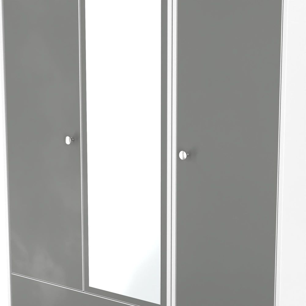 Padstow Grey and White 3 Door Tall Combi Wardrobe - 1 Mirror and LHF 2 Drawers