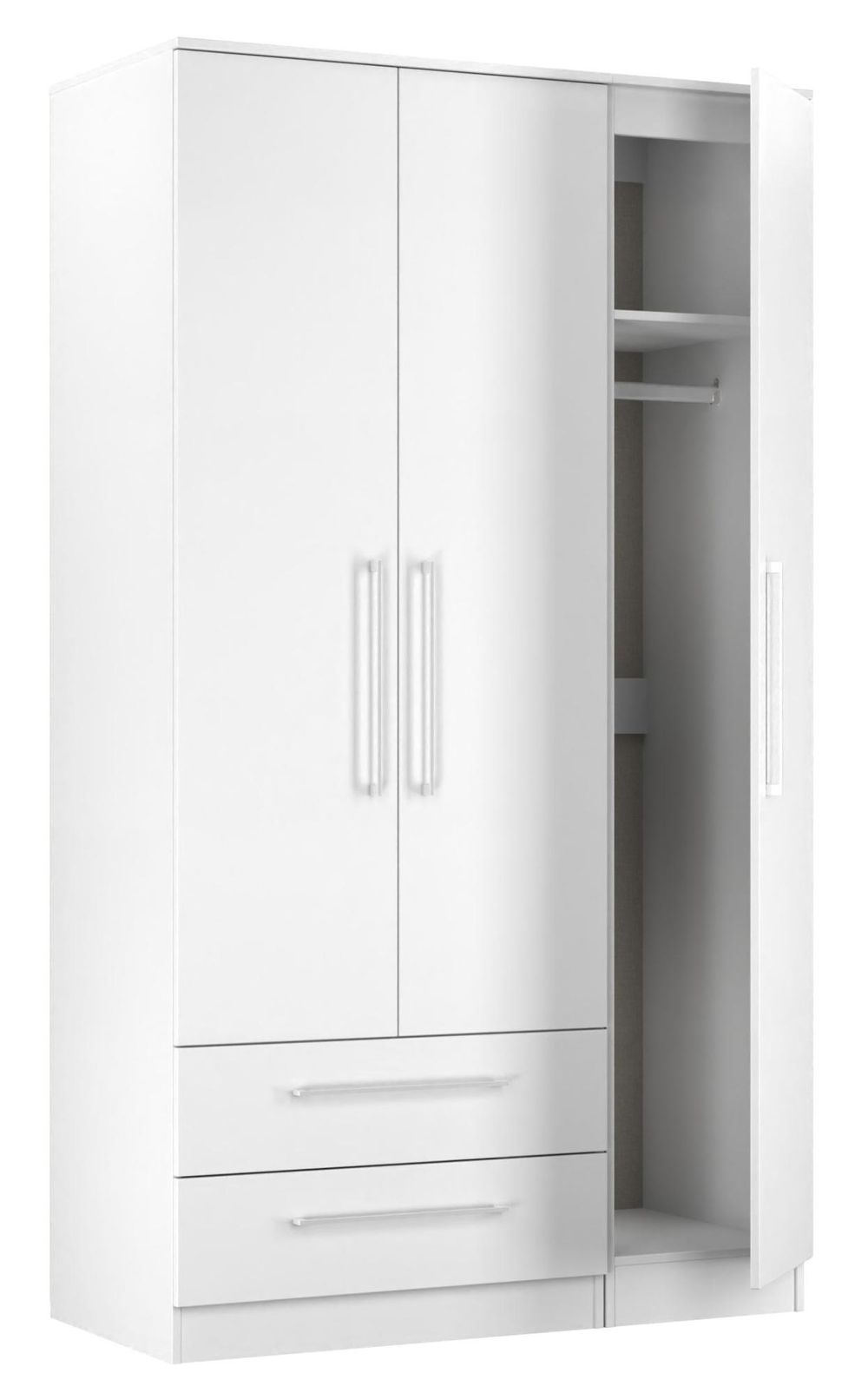 Worcester White 3 Door Tall Triple Wardrobe - LHF 2 Drawers