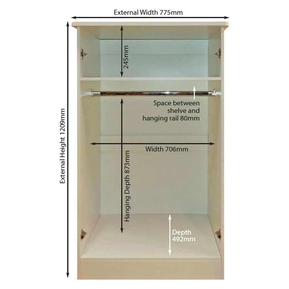 Item Code: KNI058WGLO On ready assembled wardrobes Please note in the event the wardrobe does not fit in to your property we do not accept returns please ensure you measure your propertybefore placing an order for the ready assembled wardrobes.Standard Equipment Includes : 1 Hanging Rail and 1 ShelfThis is a Made to Order itemAll Made to Order items are manufactured as per the order supplied by you.We are unable to accept cancellation or accept any extra cost that may incur due to wrong information provided by you at the time you placed the order.We will confirm all sizes/colours/finishes in written email (order confirmation) with you before going ahead with production of your order.