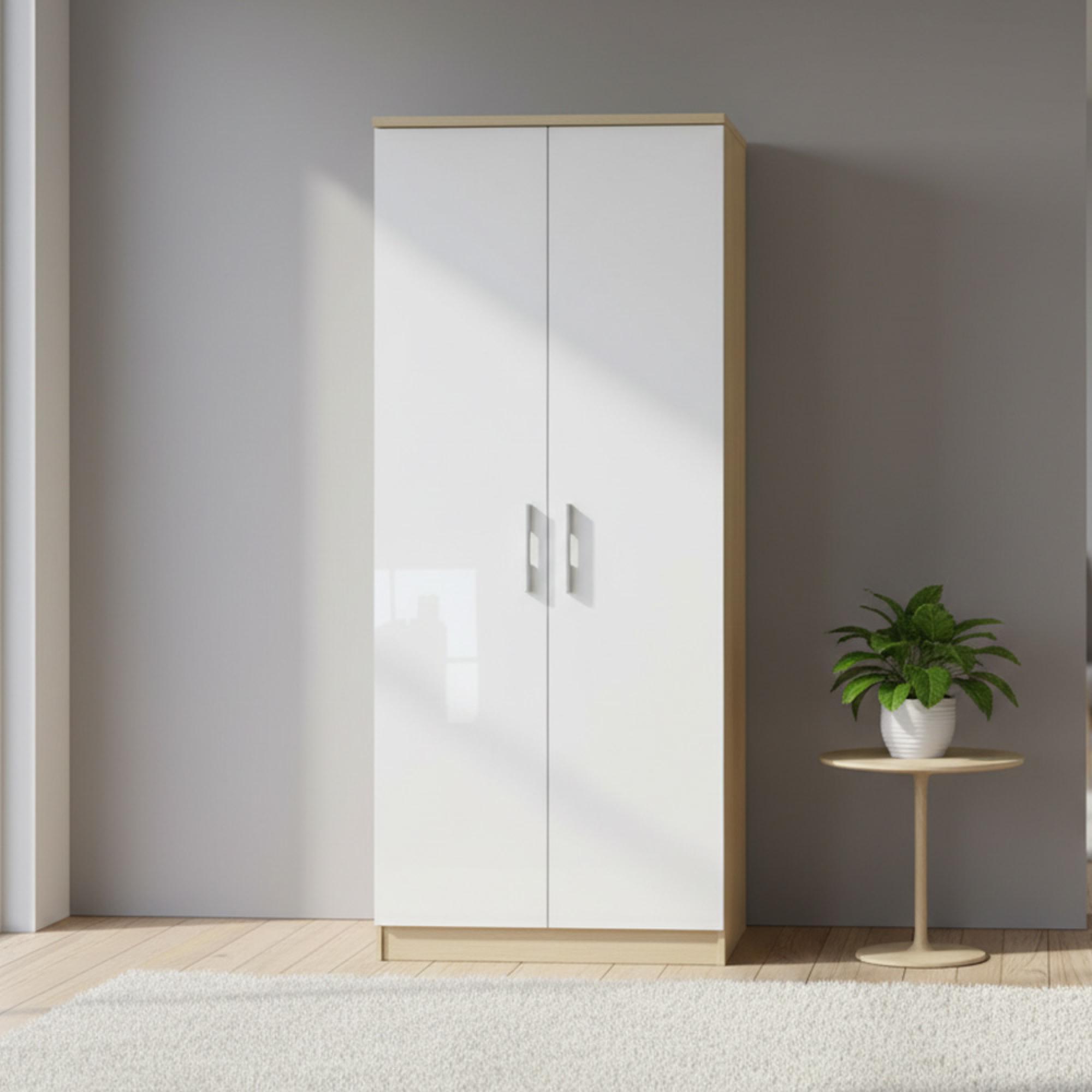 Knightsbridge White Gloss and Light Oak 2 Door Plain Wardrobe