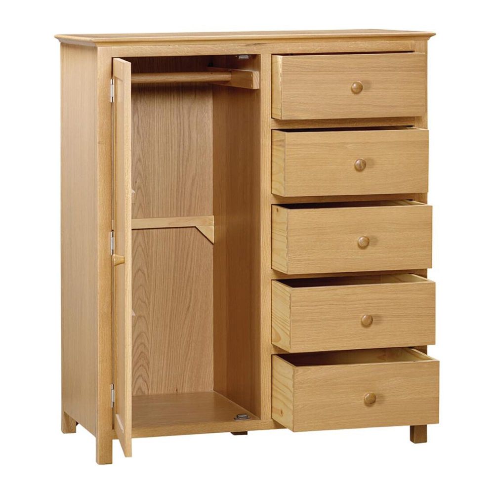 The Arlington Oak Short Wardrobe combines timeless craftsmanship with modern practicality, making it a versatile choice for any bedroom. Crafted from a blend of solid oak, oak veneer, rubberwood, pine, and MDF, it balances durability with natural beauty. The light protective lacquer enhances the wood grain while ensuring long-lasting protection, giving this piece a clean and modern finish.