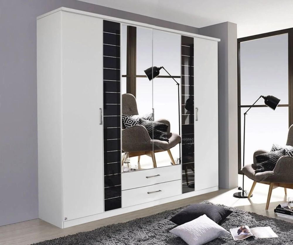 Rauch Terano 271cm White and Basalt 6 Door Mirror Wardrobe with Cornice