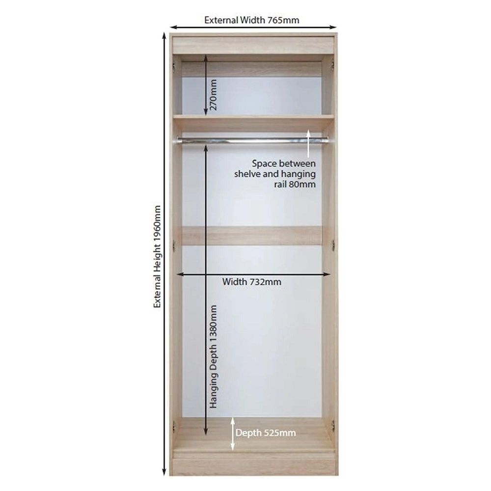 Item Code: PEM080WG On ready assembled wardrobes Please note in the event the wardrobe does not fit in to your property we do not accept returns please ensure you measure your propertybefore placing an order for the ready assembled wardrobes.Standard Equipment Includes : 1 Hanging Rail and 1 ShelfThis is a Made to Order itemAll Made to Order items are manufactured as per the order supplied by you.We are unable to accept cancellation or accept any extra cost that may incur due to wrong information provided by you at the time you placed the order.We will confirm all sizes/colours/finishes in written email (order confirmation) with you before going ahead with production of your order.