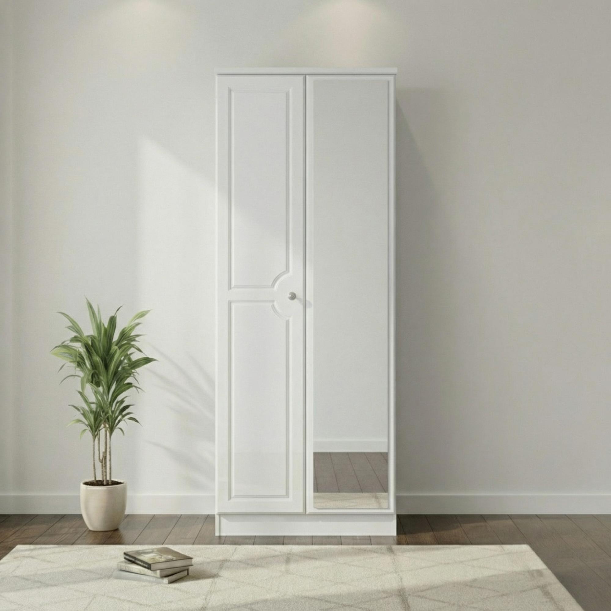 Pembroke White Gloss 2 Door Tall Wardrobe - 1 Mirror