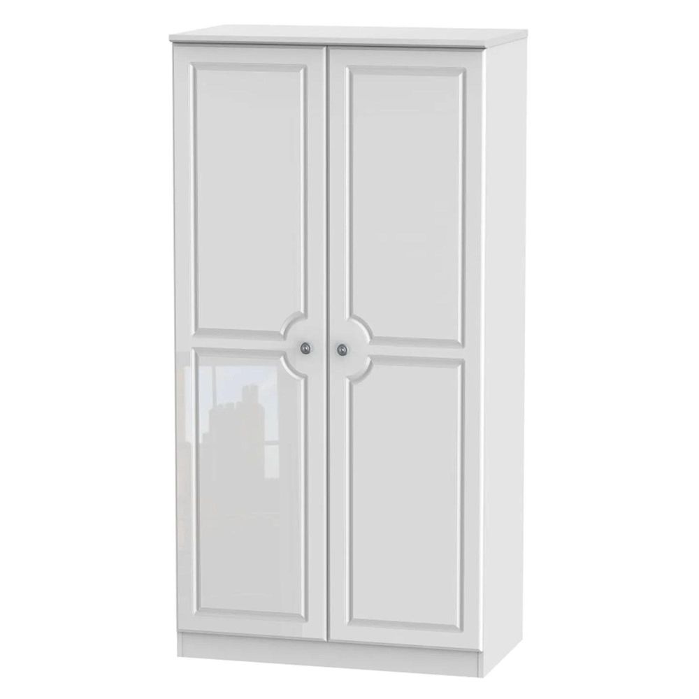 Pembroke White Gloss 2 Door Plain Wardrobe - H 182.4cm