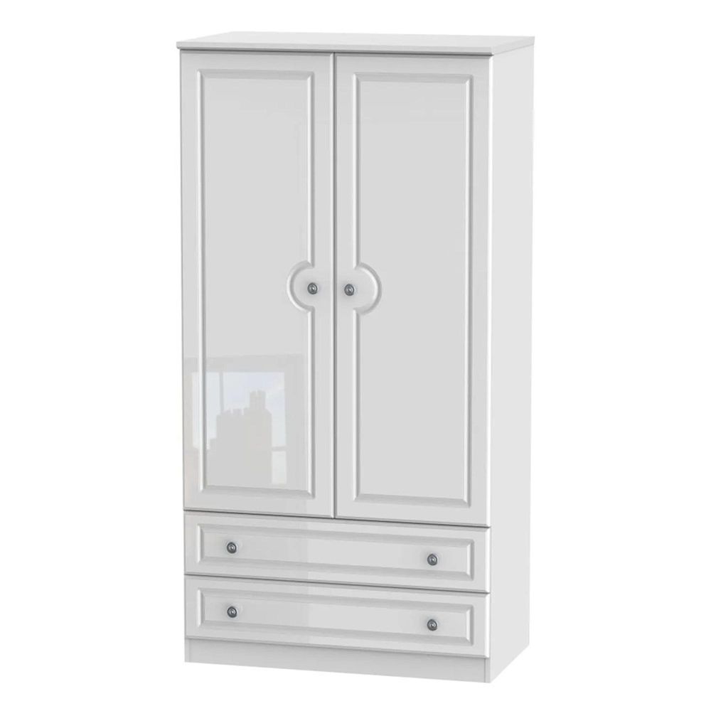 Pembroke White Gloss 2 Door 2 Drawer Double Wardrobe - H 182.4cm