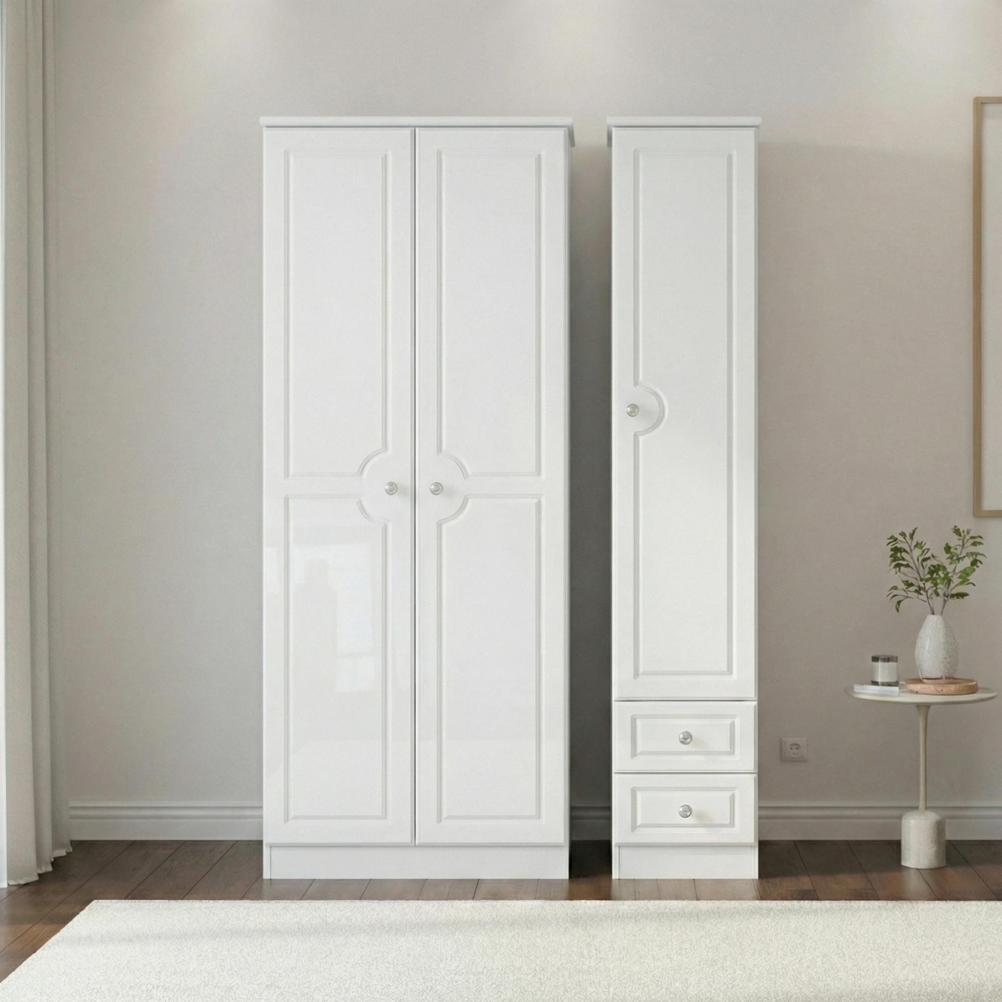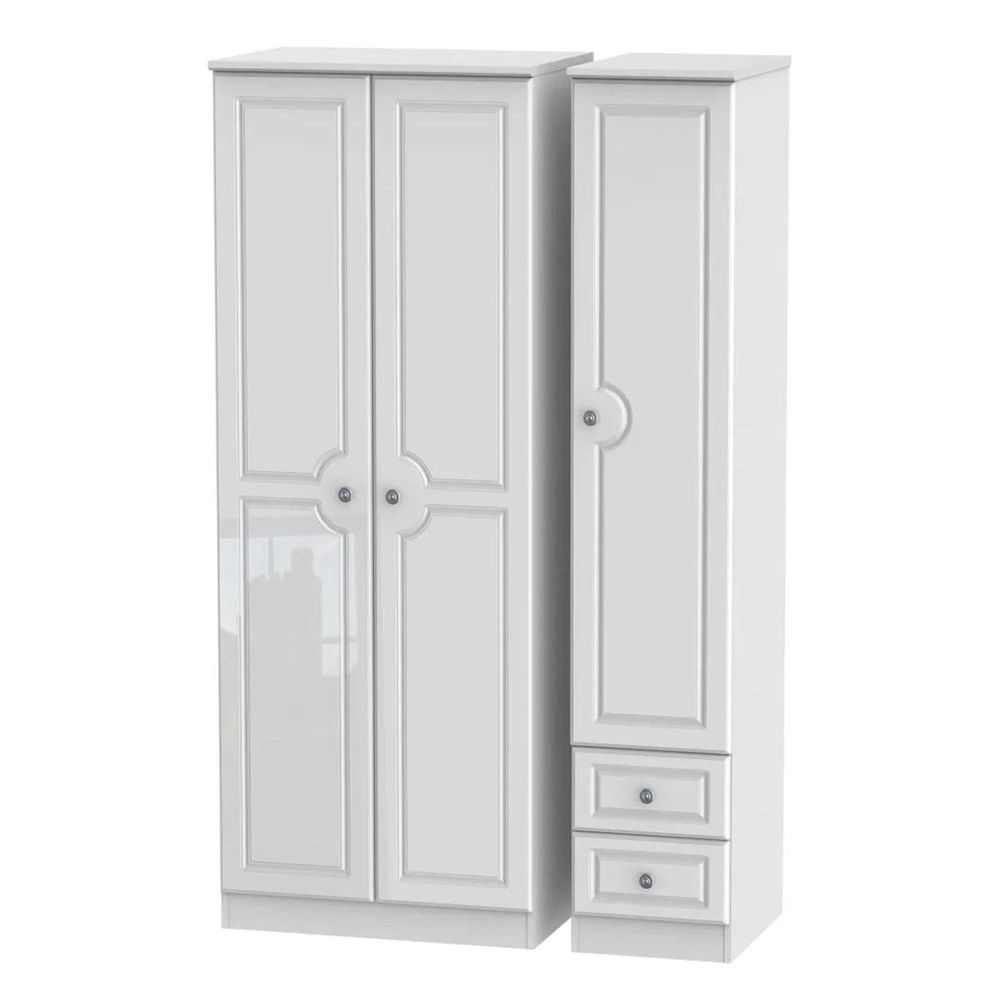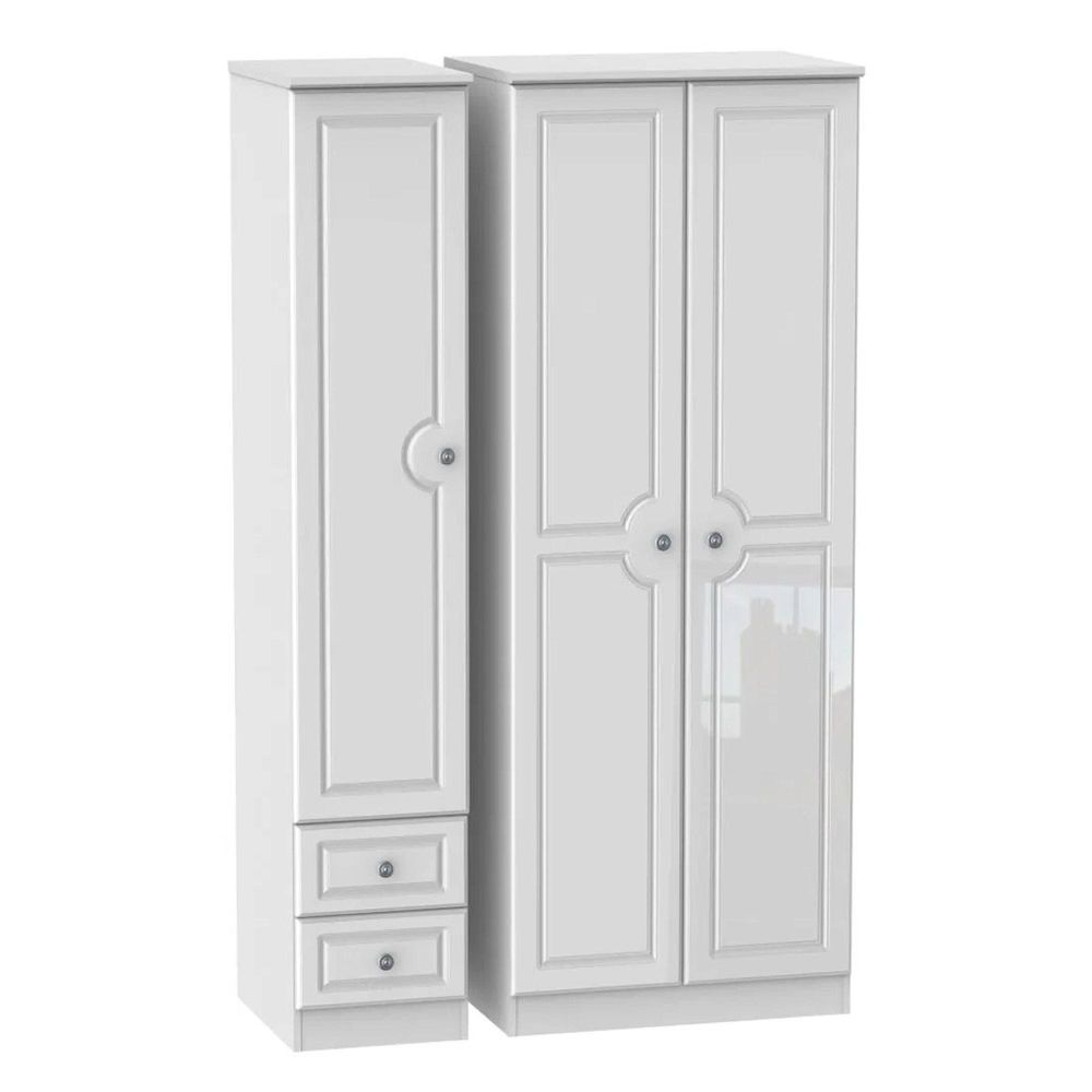 Pembroke White Gloss 3 Door Tall Triple Wardrobe - RHF 2 Drawers