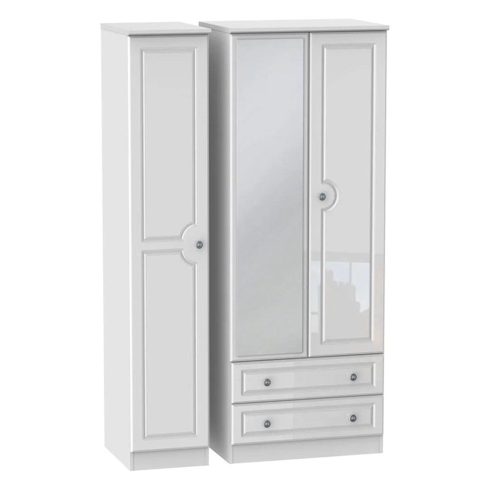 Pembroke White Gloss 3 Door Tall Combi Wardrobe - 1 Mirror and LHF 2 Drawers